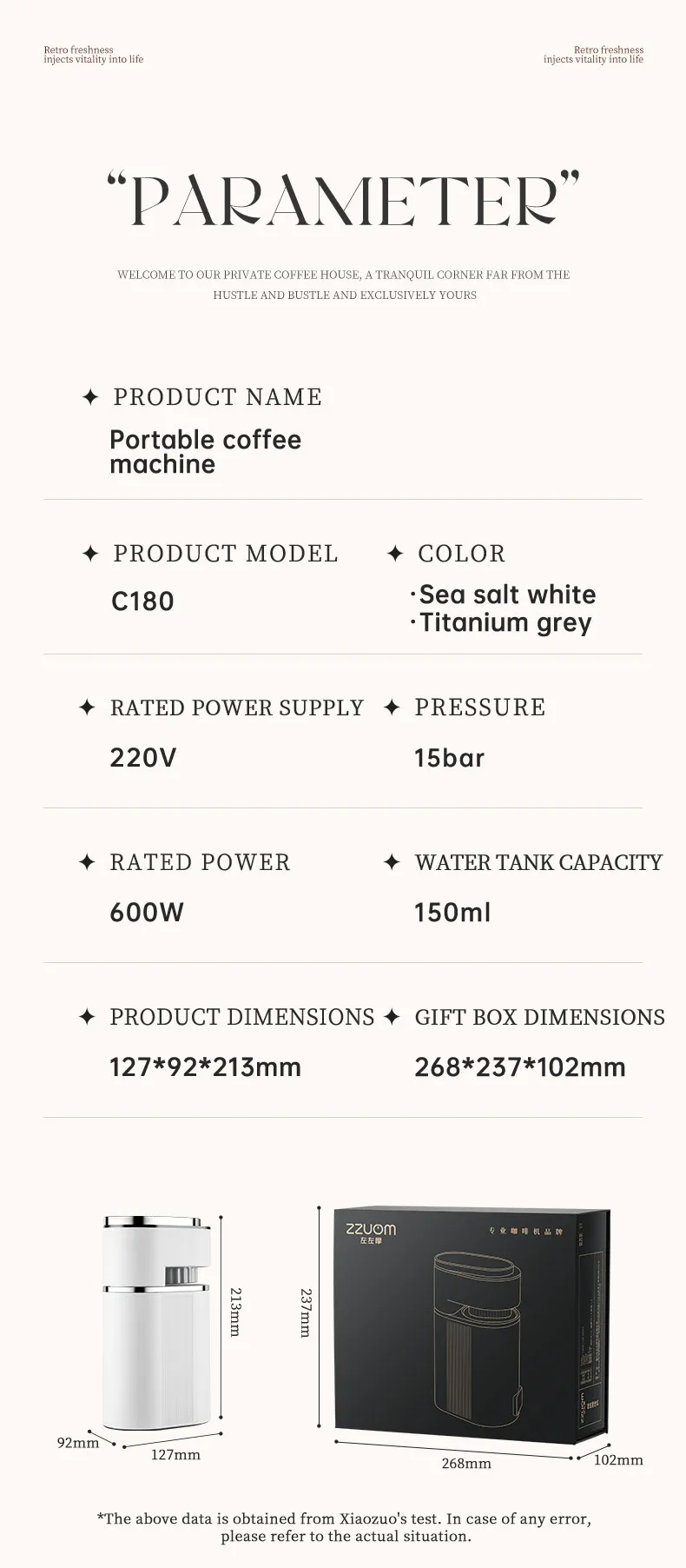 110V/220V Portable Italian coffee machine - Cold and hot dual-extraction espresso machine - Compact mini travel coffee machine