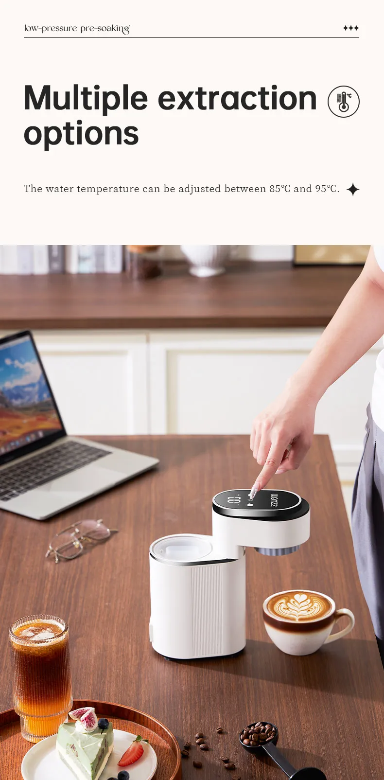 ★ 【 Multiple temperature Settings Adjustable 】 Multiple extraction options, water temperature adjustable from 85 to 95℃, flavor and texture at your fingertips, explore a new world;