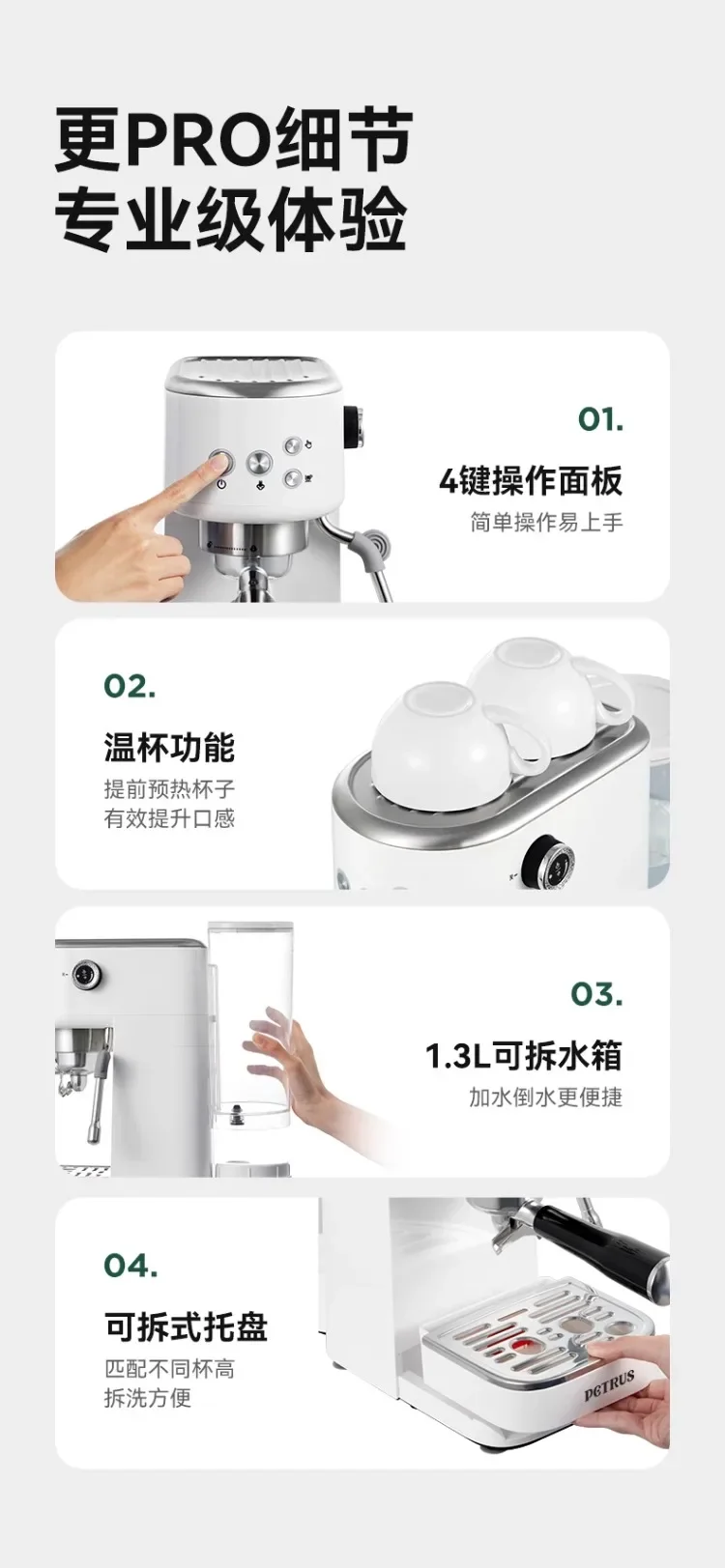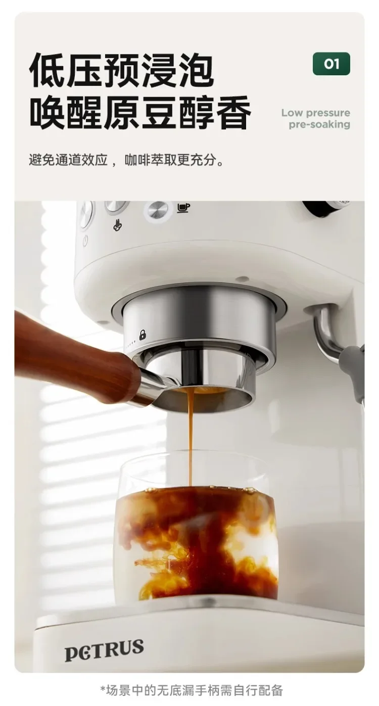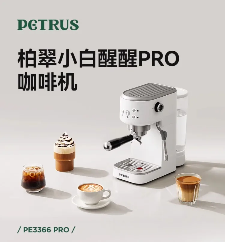 220V Petrus Coffee Machine Compact Espresso Maker with Milk Frother for Home Use AD